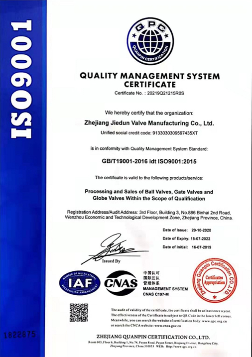 捷頓公司專業(yè)制造閥門十多年,現(xiàn)有職工近百人,資深技術(shù)工程師十多位,擁有精良的機械加工設(shè)備及標(biāo)準(zhǔn)的檢測裝置,其中數(shù)控機床就有30多臺。閥門零件全部采用CNC數(shù)控機床加工,為進一步保證產(chǎn)品質(zhì)量,給客戶一個可信賴的科學(xué)依據(jù),零部件材質(zhì)采用FSQ光譜分析儀分析,并結(jié)合產(chǎn)品壽命試驗臺進行試驗,努力讓產(chǎn)品出廠合格率接近100%,更好的保障了產(chǎn)品的使用質(zhì)量,完善質(zhì)量保證體系,公司還是龍灣區(qū)閥門協(xié)會理事單位。